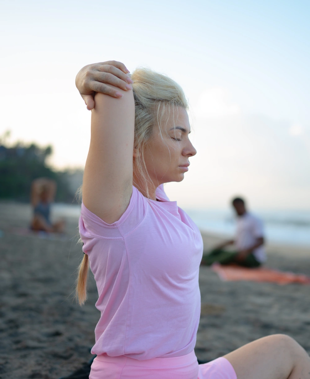 - Use of yoga mats and props such as blocks, straps, and bolsters